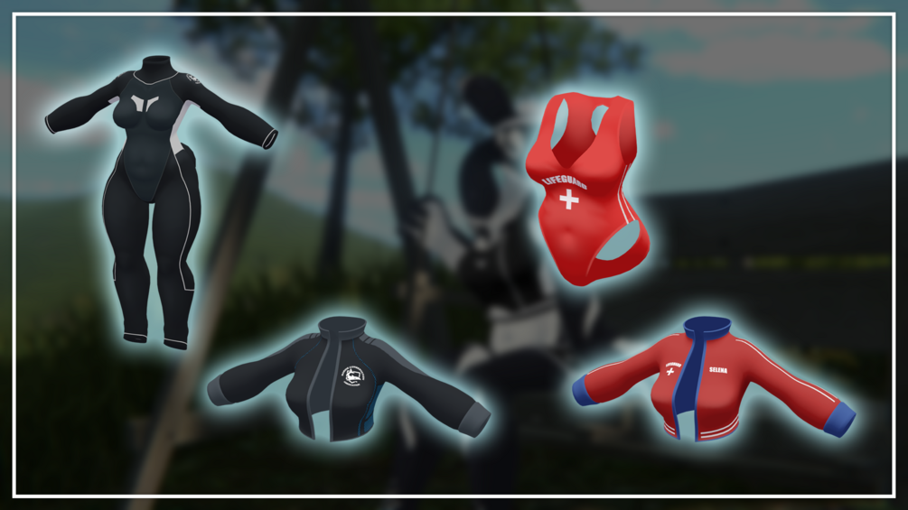Wetsuit and Lifeguard Outfits for Selena the Orca [VRChat Clothing]