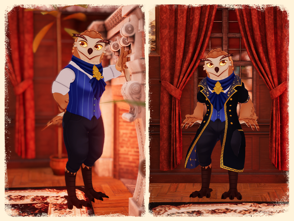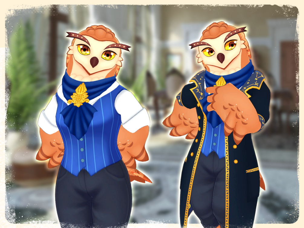 A handsome dapper owl ready to bring his finest wares. More clothing options will be available in the future!